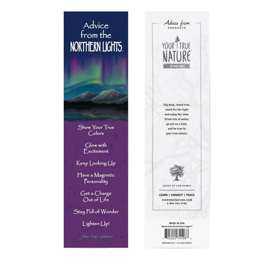 Bring a touch of magic to your reading with the “Advice from the Northern Lights” bookmark. Featuring the breathtaking aurora borealis dancing over snowy peaks, this bookmark offers uplifting reminders to live brightly and embrace your uniqueness.