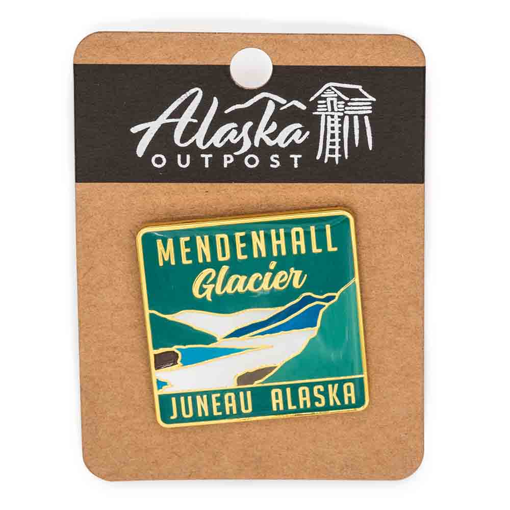Celebrate one of Alaska’s most breathtaking landmarks with this Juneau Mendenhall Glacier Collectible Pin. Featuring a stunning mountain and glacier design framed in vibrant turquoise and gold tones, this enamel pin beautifully captures the cool majesty of Juneau’s famous icefield. The “Mendenhall Glacier – Juneau Alaska” lettering adds a classic travel-inspired touch, making it the perfect keepsake from your Alaskan adventure.
