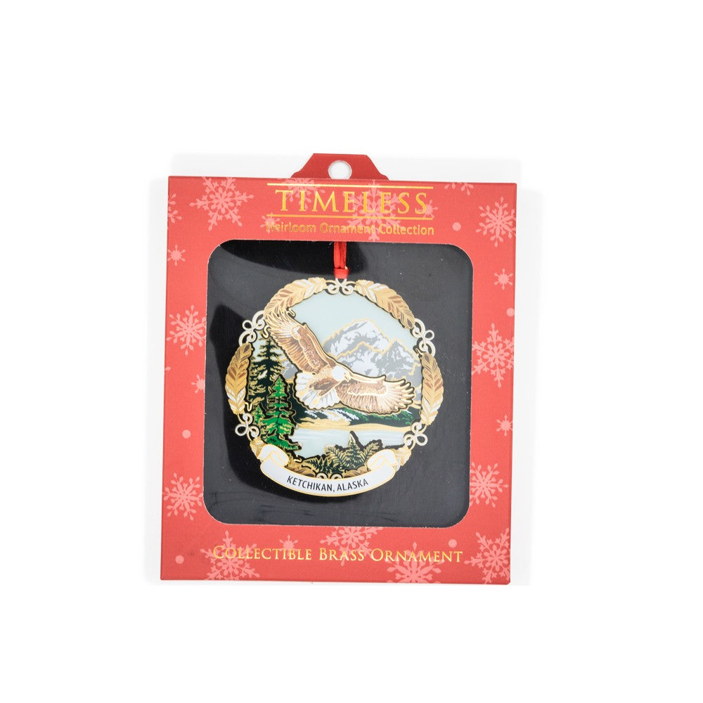 Timeless Brass Ornament: Soaring Eagle w/ Ketchikan, Alaska